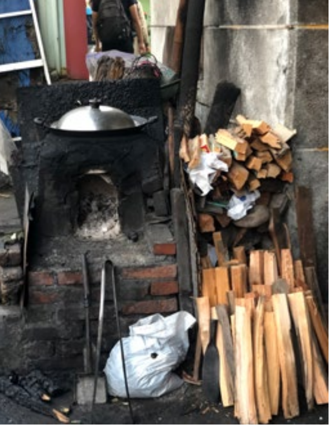 Walking from the street into the alley, I saw and smelled the wood used for firewood in ancient times.